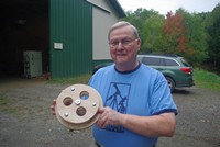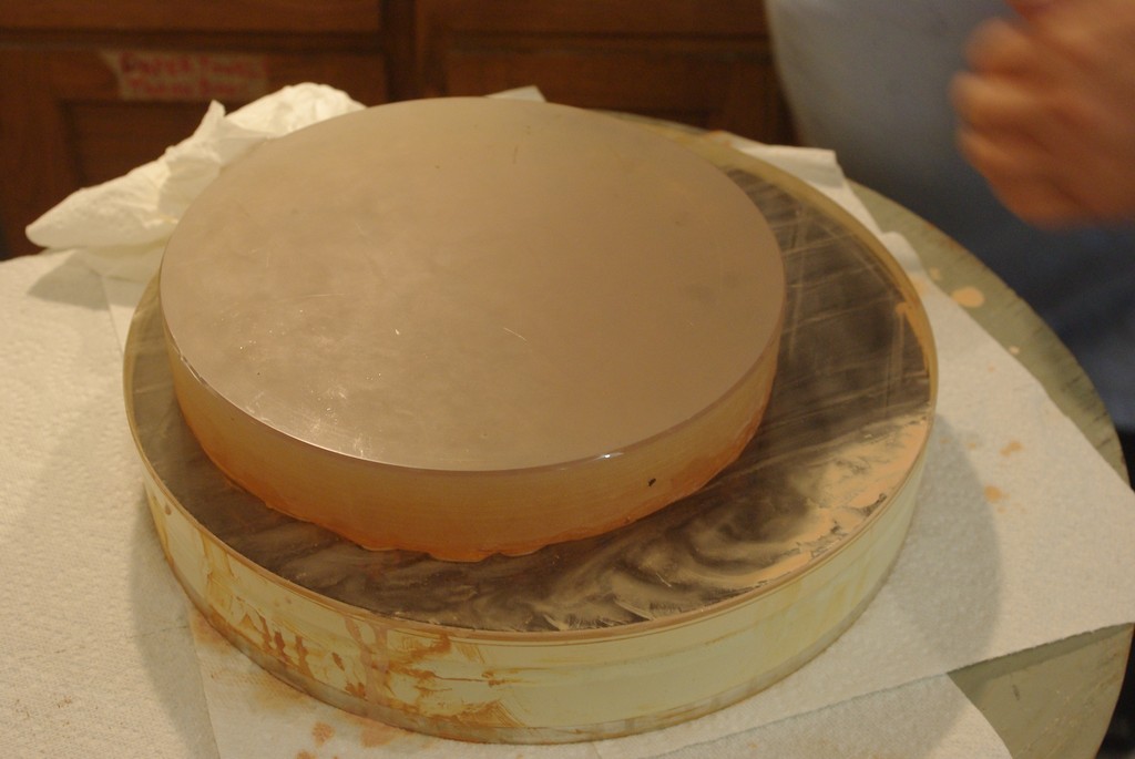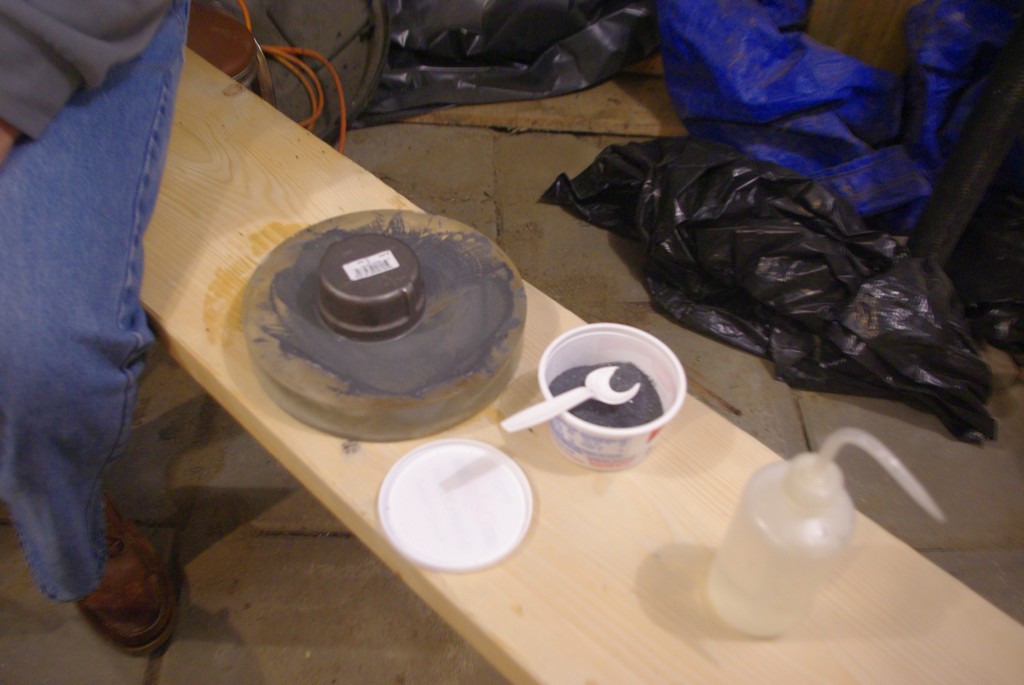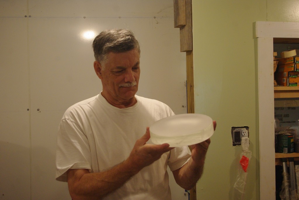 Bill is going for an extremely fast mirror. At f/3 he has a lot of hogging to do, so he is using a pipe fitting to grind the glass. Once to the proper depth, he will pour a dental stone tool to match and grind the old fashioned way.