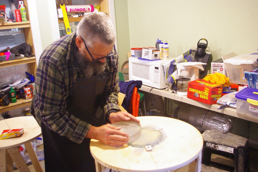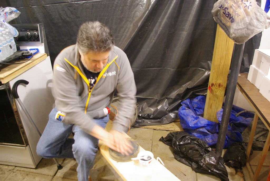 Pat rough grinding his 8" mirror with #80 carbo.