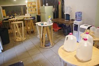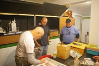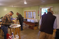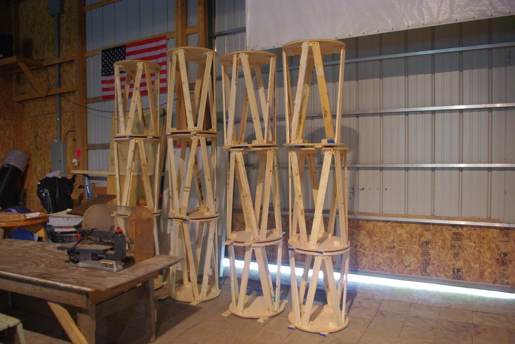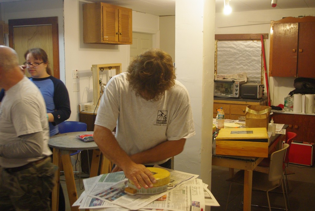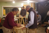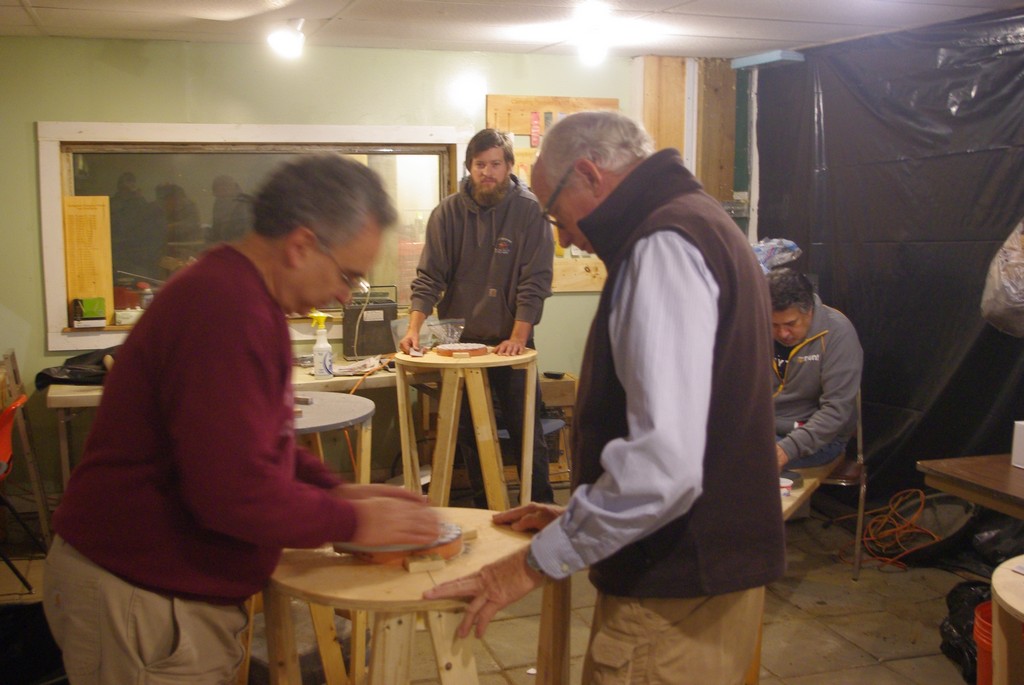 Fran and crew spent a busy sawdust filled day making up a batch of a dozen new Parker grinding barrels. These neat inventions by club member Dick Parker are a terrific way to have a light portable yet strong work surface.