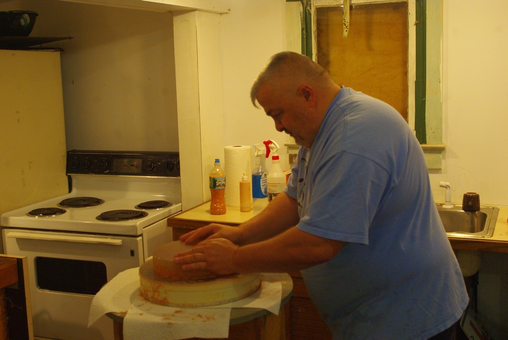 Remember Fred in the first section? He finished rough grinding and graduated to the Bunkhouse to work on #220 grit. Go Fred Go.