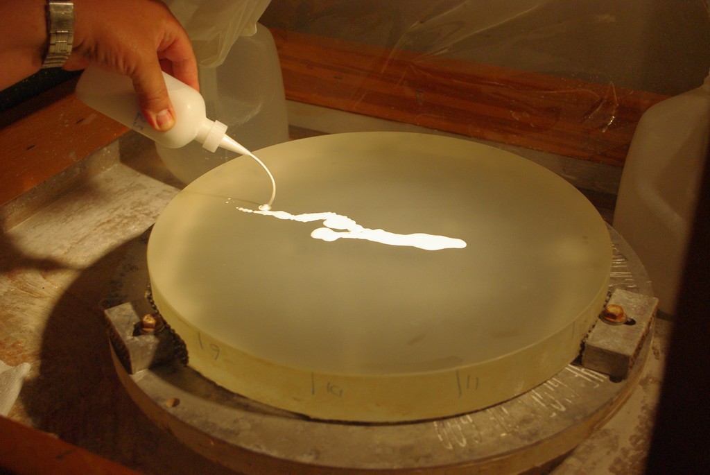 Jeff uses a slurry of fine aluminum oxide grinding powder.
