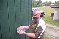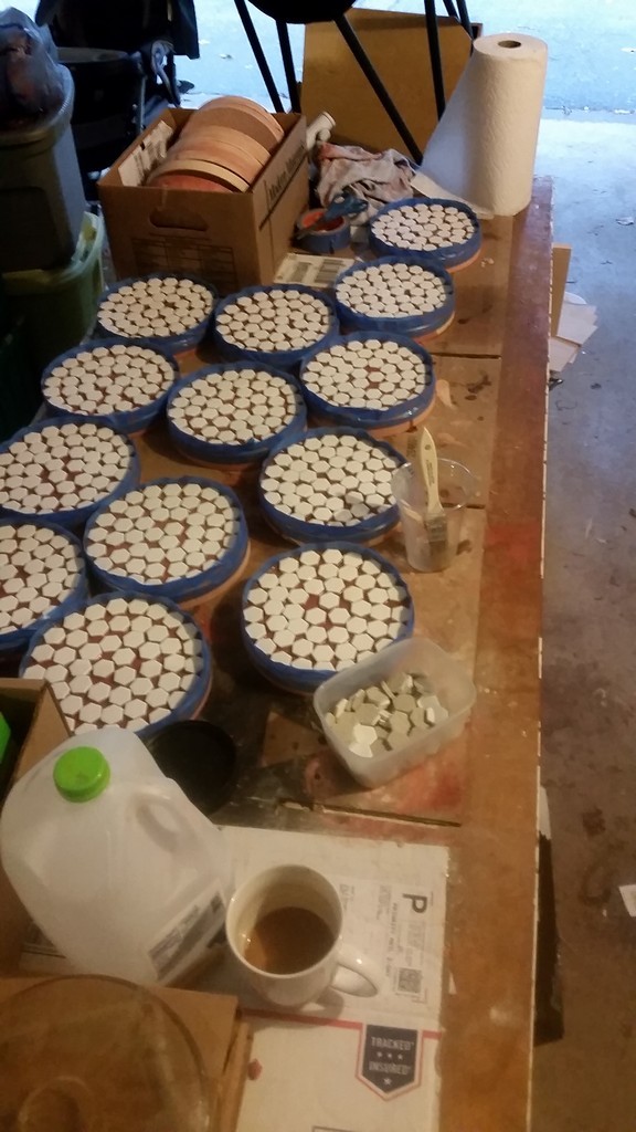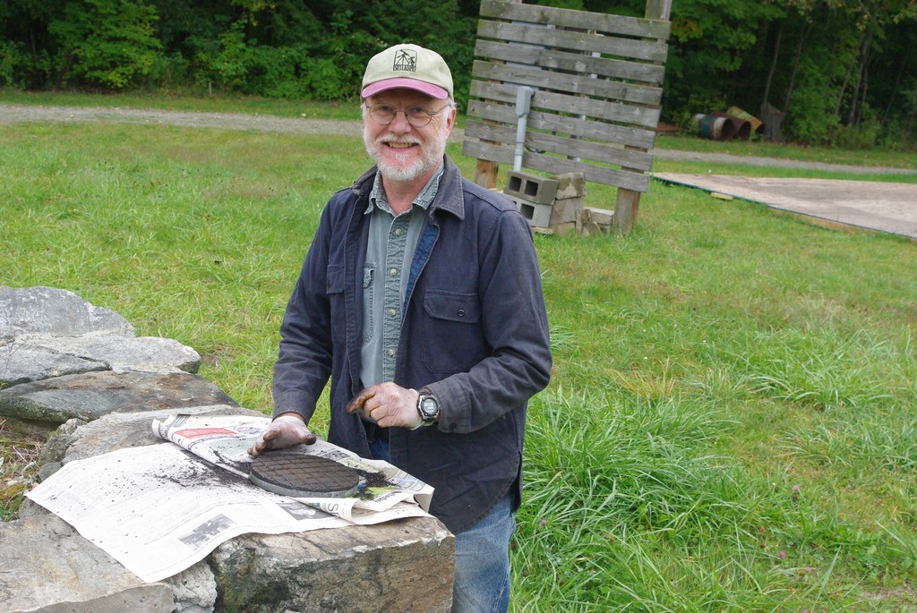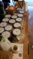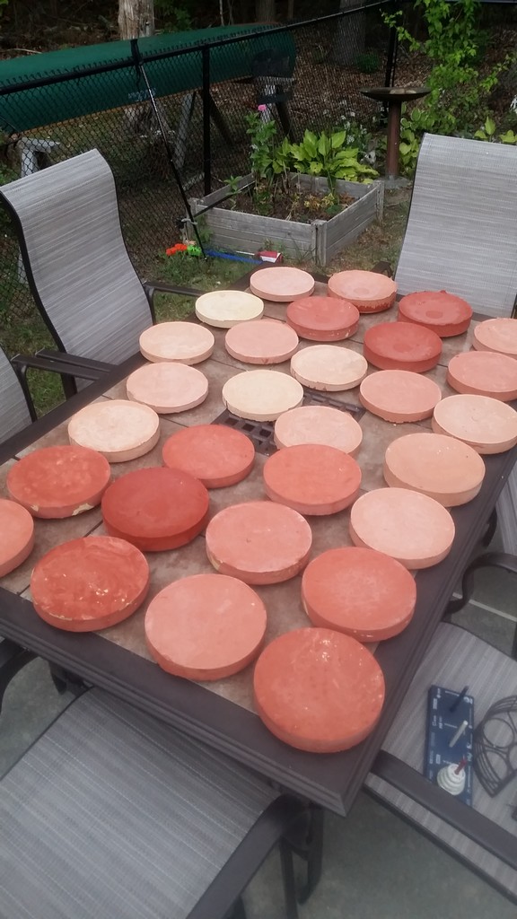 This year's pile of raw dental stone tools dry in the late summer sun in Jay's backyard. 75 pounds of gypsum powder went into this production line.
