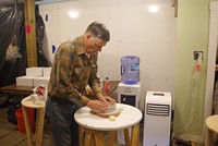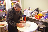 Fred is also hogging his curve: notice he is using a glass tool instead of the tile version Pat has.