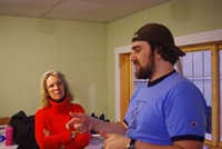 Francis & Cale discuss proper strokes while Michael listens in.