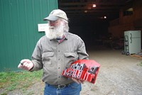 Pat taking a close look at his hogged out curve.