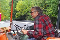 Club Site Manager John Martin clattering by on his second vehicle, a Kubota tractor. John is working with club President Dave T and his wife Julie to build an awning over the new Tee Shirt shop at Tuthill Towers.